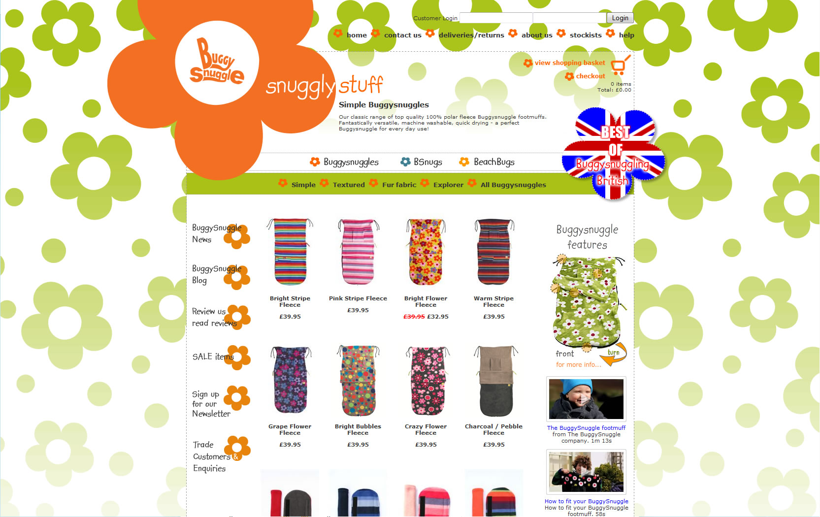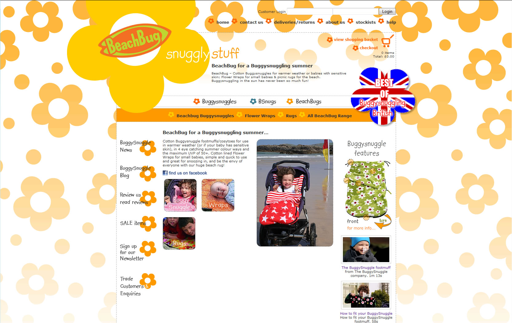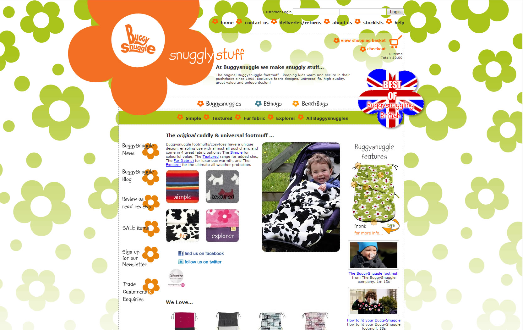 Company: BuggySnuggle, Oxford UK. What they wanted to achieve: A vibrant e-commerce website that is easy to use, optimised for search engines and incorporates an existing branding and logo. What we did: An e-commerce website with customer friendly user interface that is search engine optimised, and utilises existing branding. How we did it: Design development, Graphic Design, Database Design, Implementation, CMS development, Live-server testing and customer maintenance training. What they think of it: Coming Soon... Website: www.buggysnuggle.com Screenshots